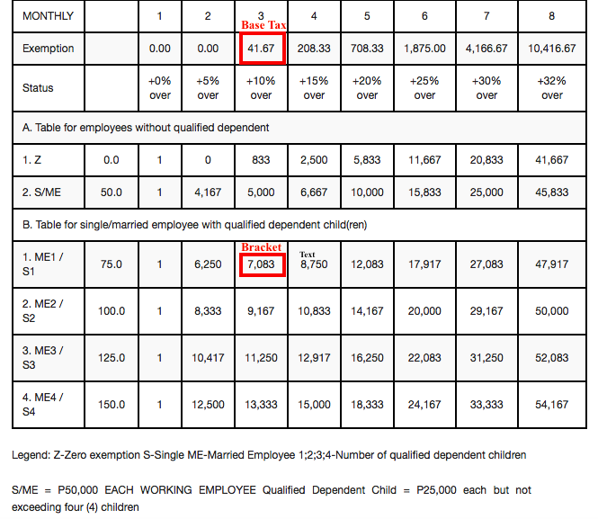 Using the table as the reference with the same person as the sample as before, let us add the following information in the equation to get a perfect sense of what a withholding tax is in relation to your monthly basic pay: